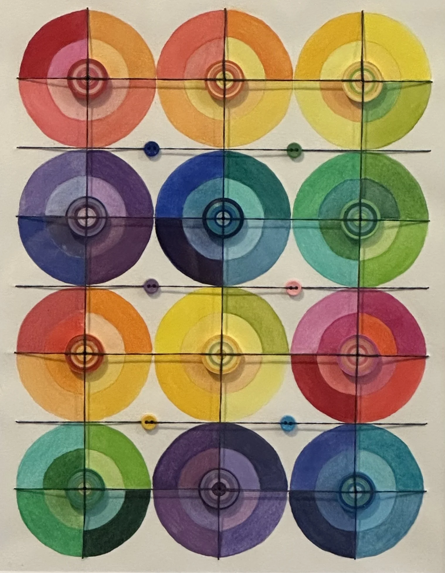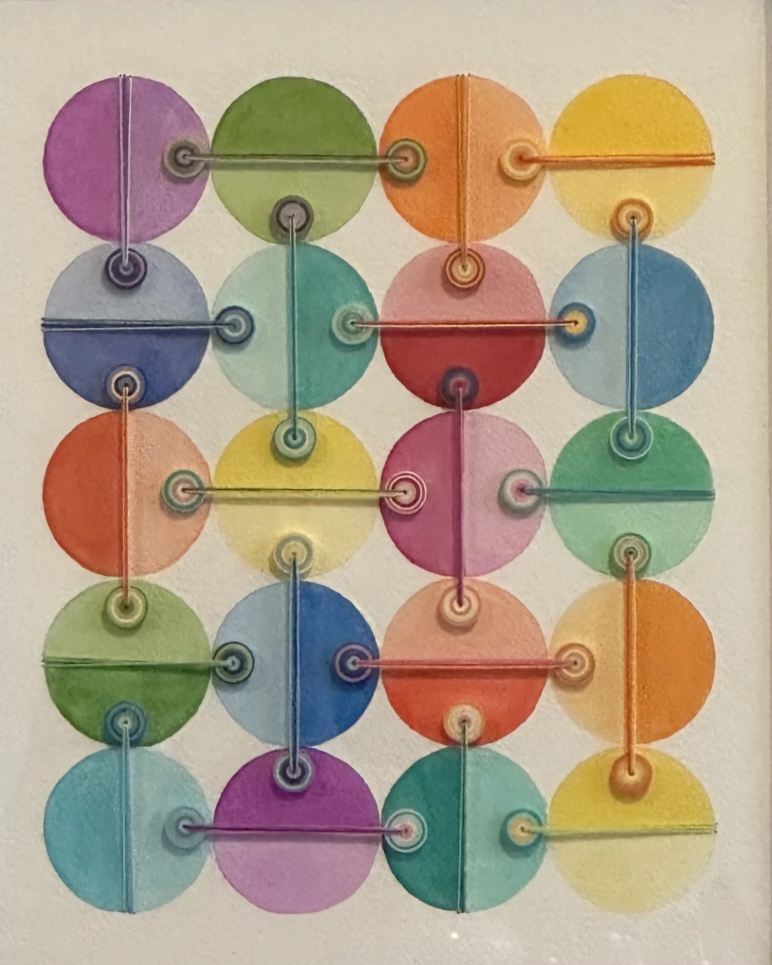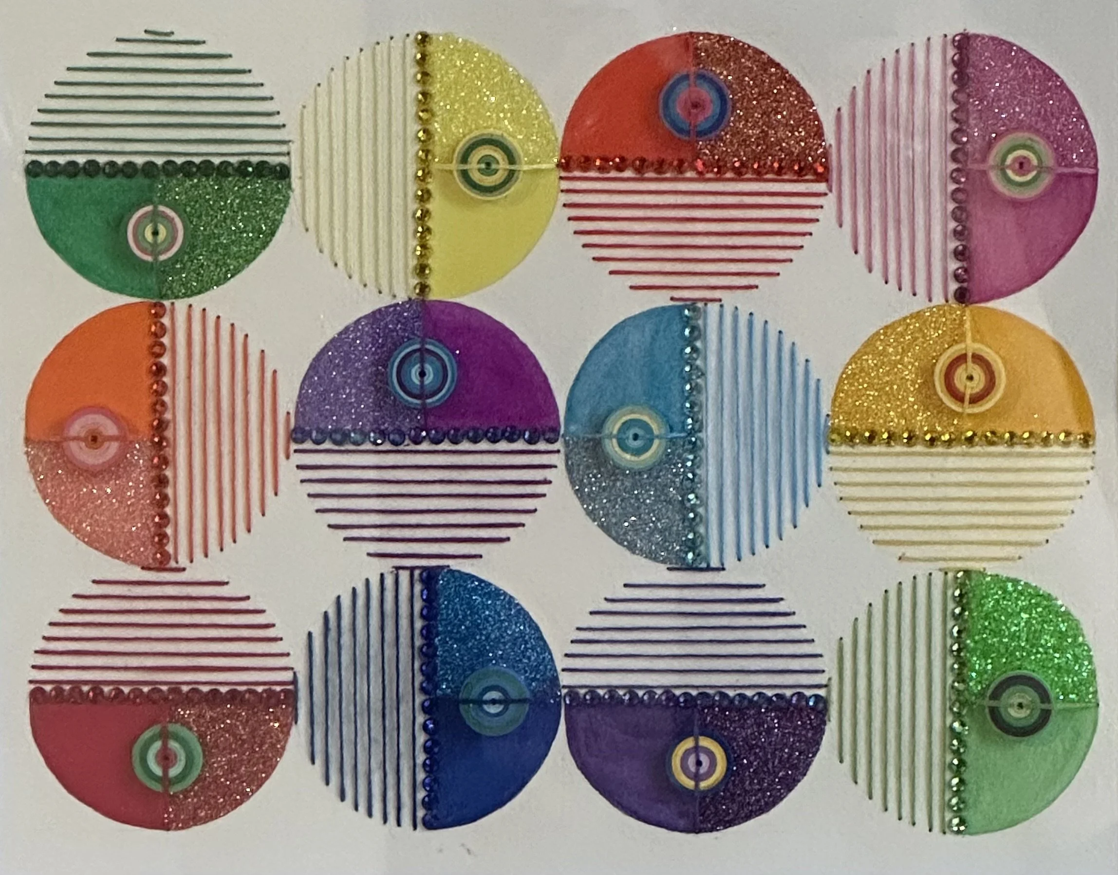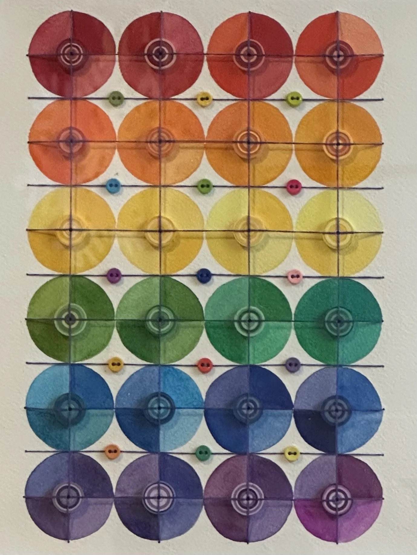 I am a mixed media artist living and working in Chicago. I am passionate about creating artwork that incorporates traditional fiber arts of quilling and embroidery with watercolor paint. I have an unrestrained love of color and the joy it brings. Each painting begins with shapes and layers of watercolor. During the final phase of the piece, I add a layer of fibers, buttons and quilling papers onto my painted watercolor designs to give energy and life to the patterns and shapes.