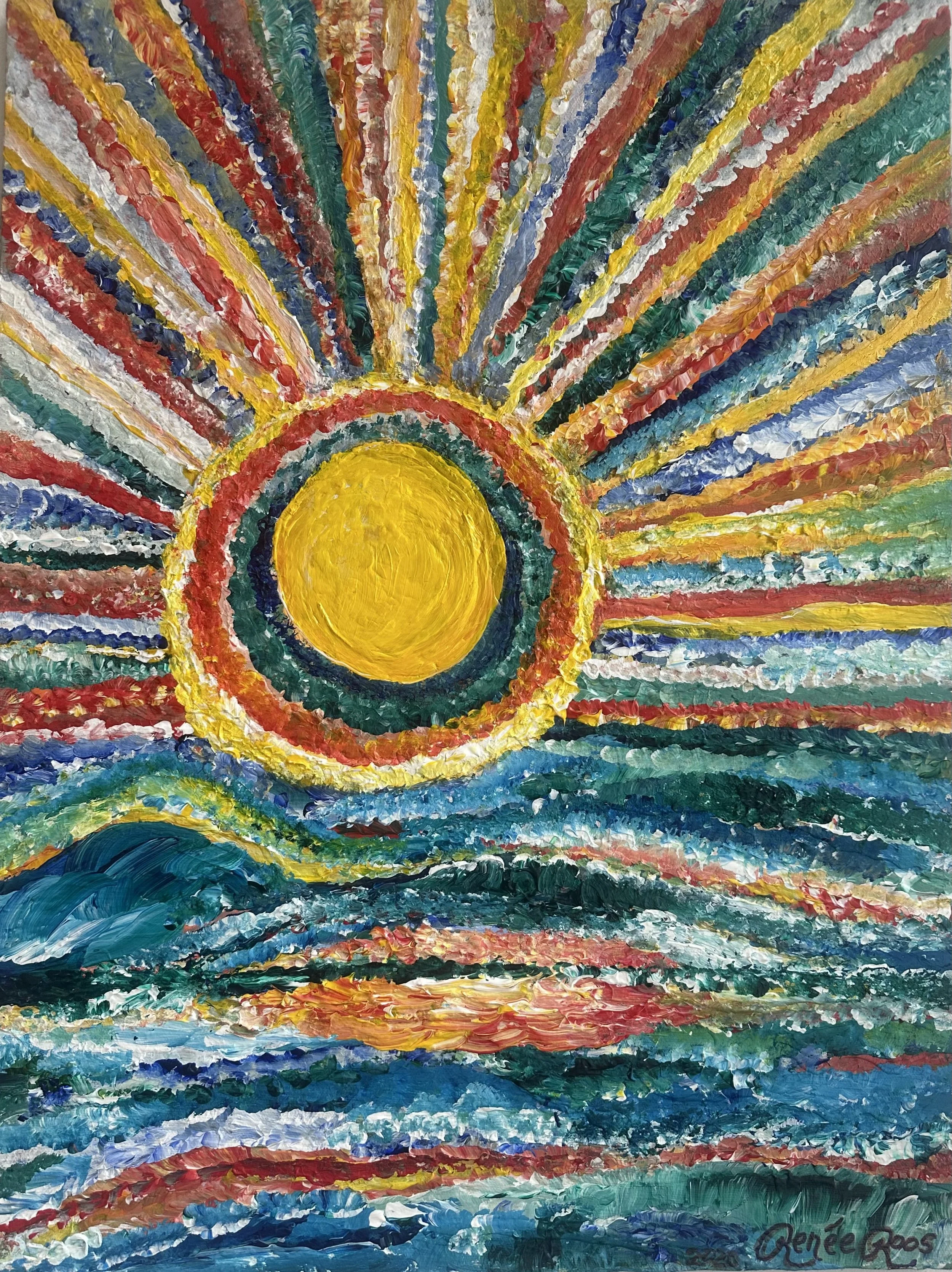 Color is the most important aspect of Renee's painting. She picks colors that evoke joy, energy, and new life. She also plays with brushstrokes and texture. Renee is a nanny to a four-year-old and 1-year-old, and given the time she spends with little children, she believes the most exciting paintings are the ones that are fun to touch.